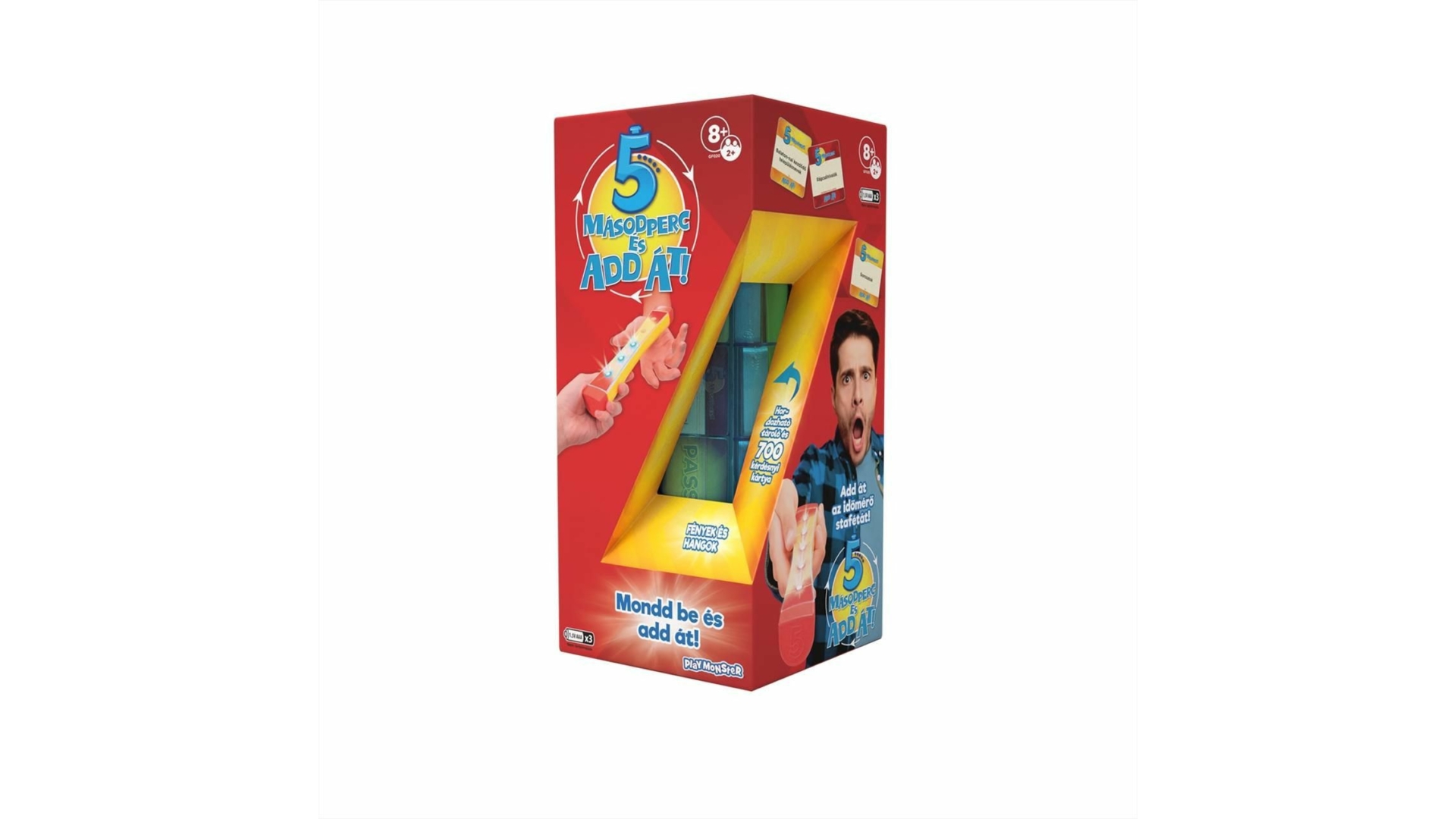 Itt az idő feldobni a játékszabályokat! Az 5 másodperc és add át részben a klasszikus 5 másodperc, 3 válasz társasjátékokra épít, a klasszikus időmérőt azonban most a stafétabot váltja.