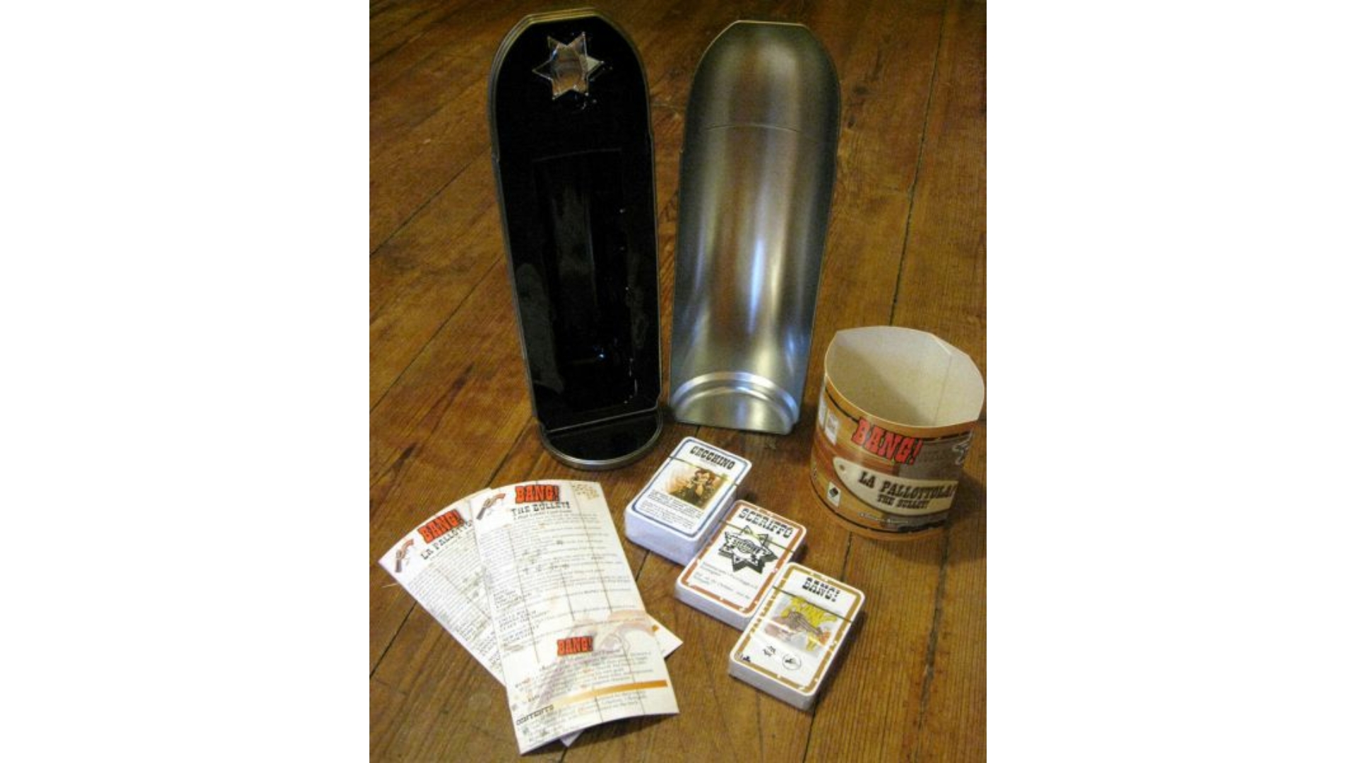 Ha valaki akar játszani bang!-el, akkor mindenképp érdemes ezt választani. Igaz, hogy nem magyar (angol-olasz), de ez nem zavaró. Ellenben megkapsz a csomagban minden fontosabb kiegészítőt! A csomagolás pedig külön szuper, ha nem használod, még a szekrényen is jól mutat.