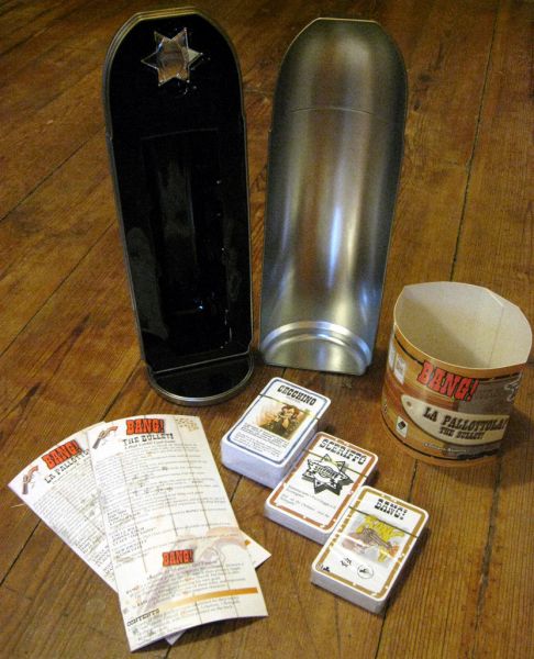 Ötletes kialakítás a Bang! játéknak, ami tartalmaz több kiegészítőt is, így azonnal azokkal lehet játszani, jócskán feldobva az eredeti játékot.