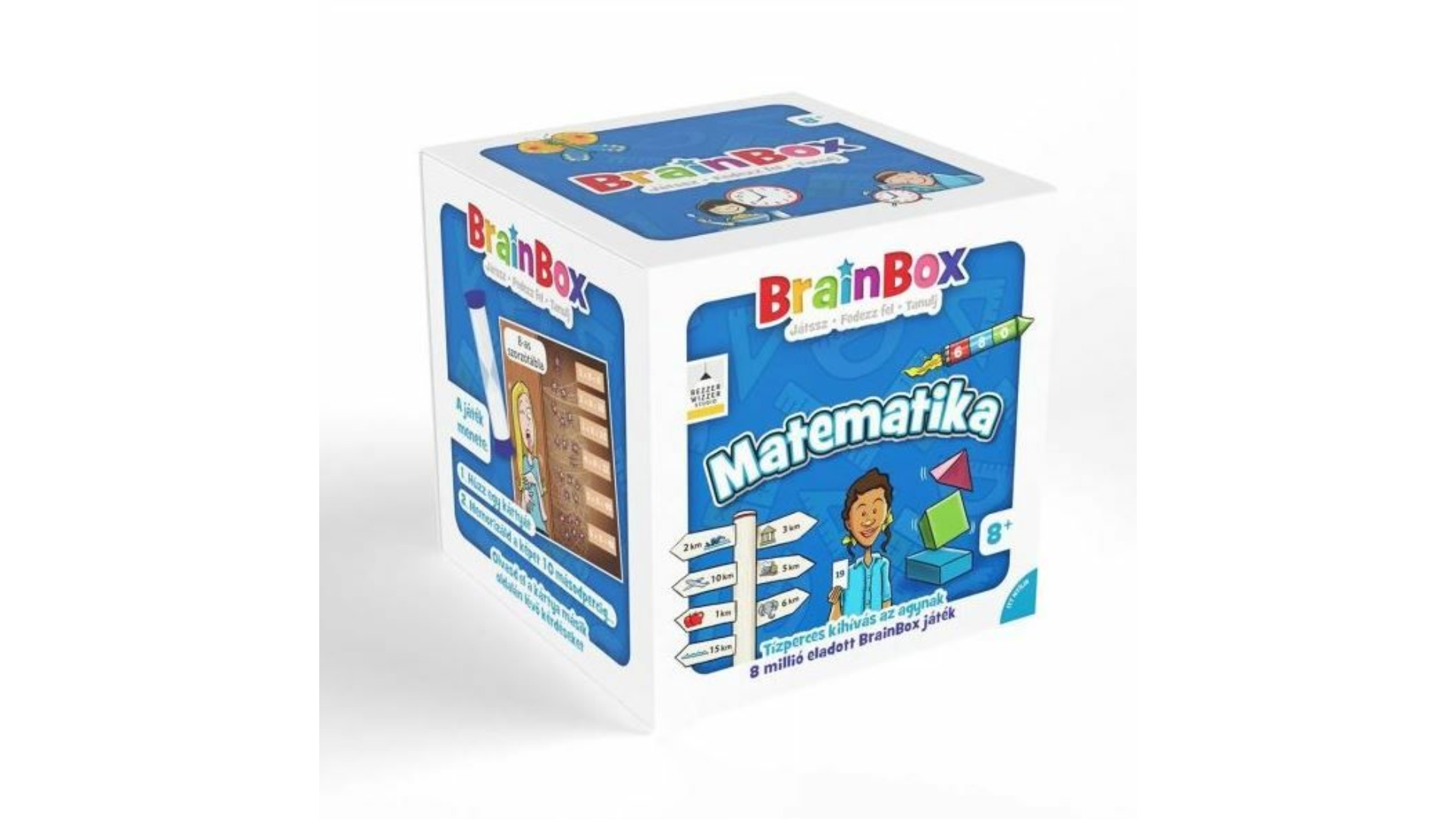 Gyorsan tanulsz? Lássuk, hogy boldogulsz az matekkal! A BrainBox Matematika remek agytorna és szórakozás egy vagy akár több játékos részére! Húzz egy kártyát, tanulmányozd, és jegyezz meg minél több információt 10 másodperc alatt. Ezután fordítsd le a kártyát, dobj a kockával, és válaszolj helyesen a kidobott számmal jelölt kérdésre. Ne húzd ám az időt, hiszen a homokórán gyorsan leperegnek a szemek! A válaszokat a kártyán ellenőrizheted. Ha jó megfigyelő vagy, és jól pörög az agyad a matekban, akkor a legtöbb kártya nálad landol! A BrainBox a gyors megfigyelések és a vizuálismemória-kérdések családi játéka.
