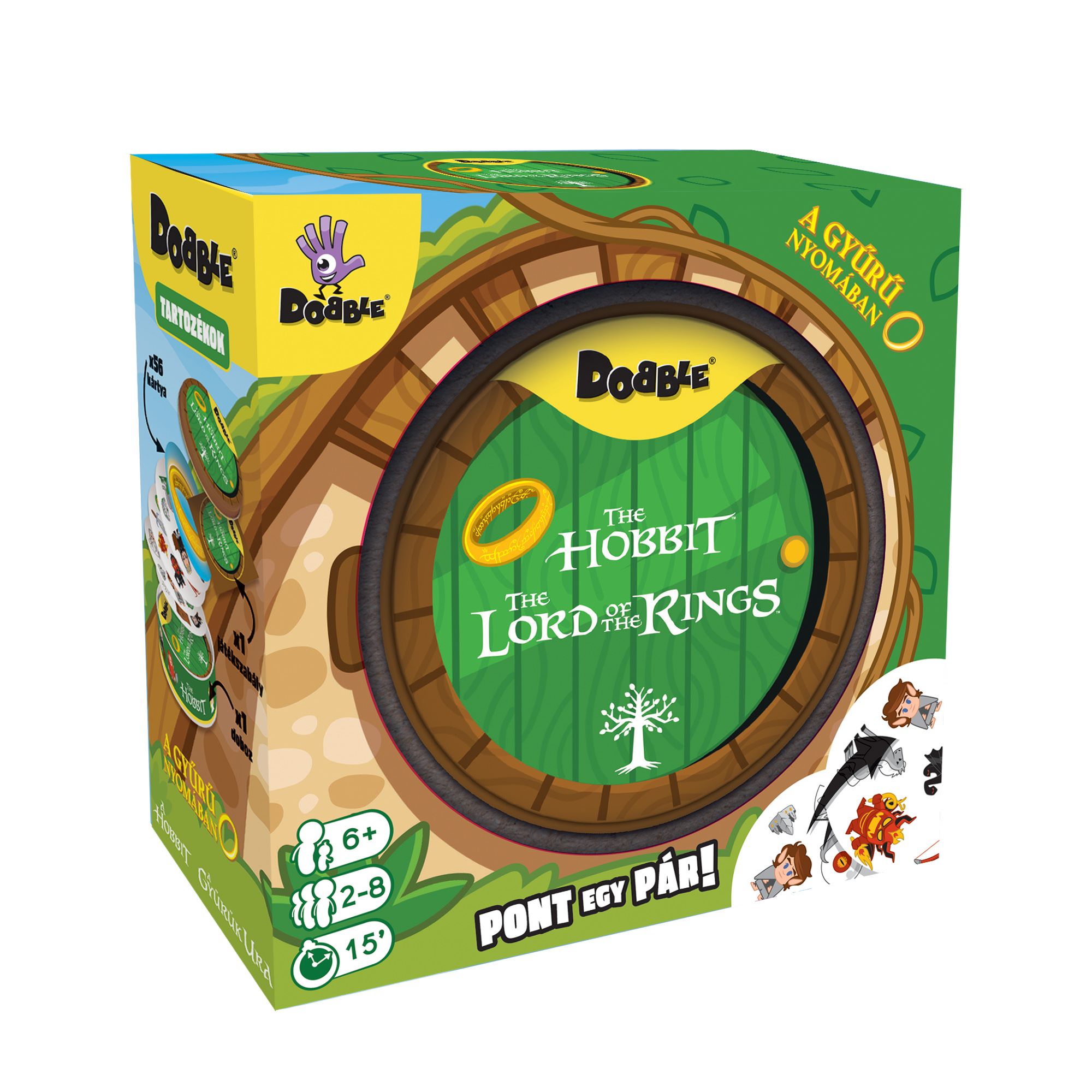 Frodó, Samu, Gandalf vagy éppen Smaug – vajon ki bukkan fel előbb a kártyádon? A Dobble – A Gyűrű nyomában a gyorsaság és felismerés partijátéka Középfölde szereplőivel. Találd meg te először a közös szimbólumot, és győzd le ellenfeleid az 5 minijáték egyikében!