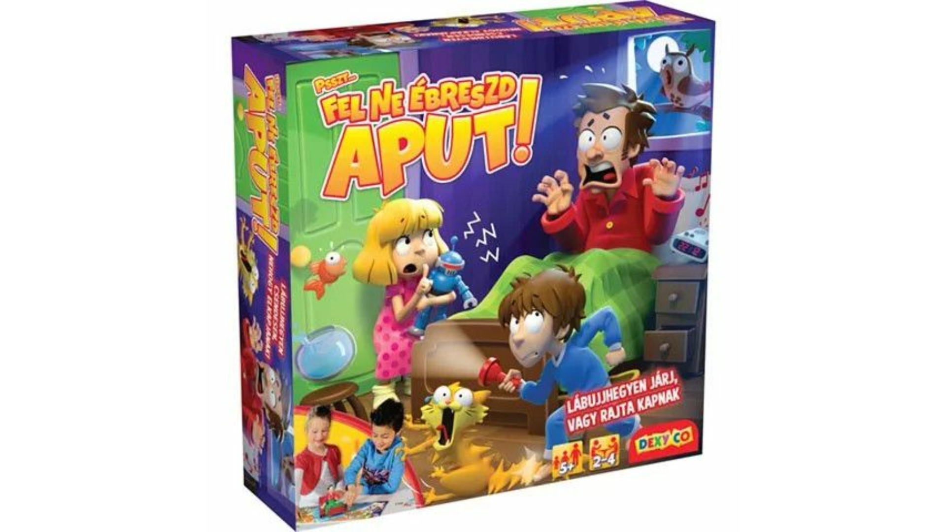 A Fel ne ébreszd aput! egy éjféli verseny a csokoládétortáért. Könnyen hangzik, de ez a gyerekeknek szóló táblás játék egy csavarral érkezik: nem ébresztheted fel apát!