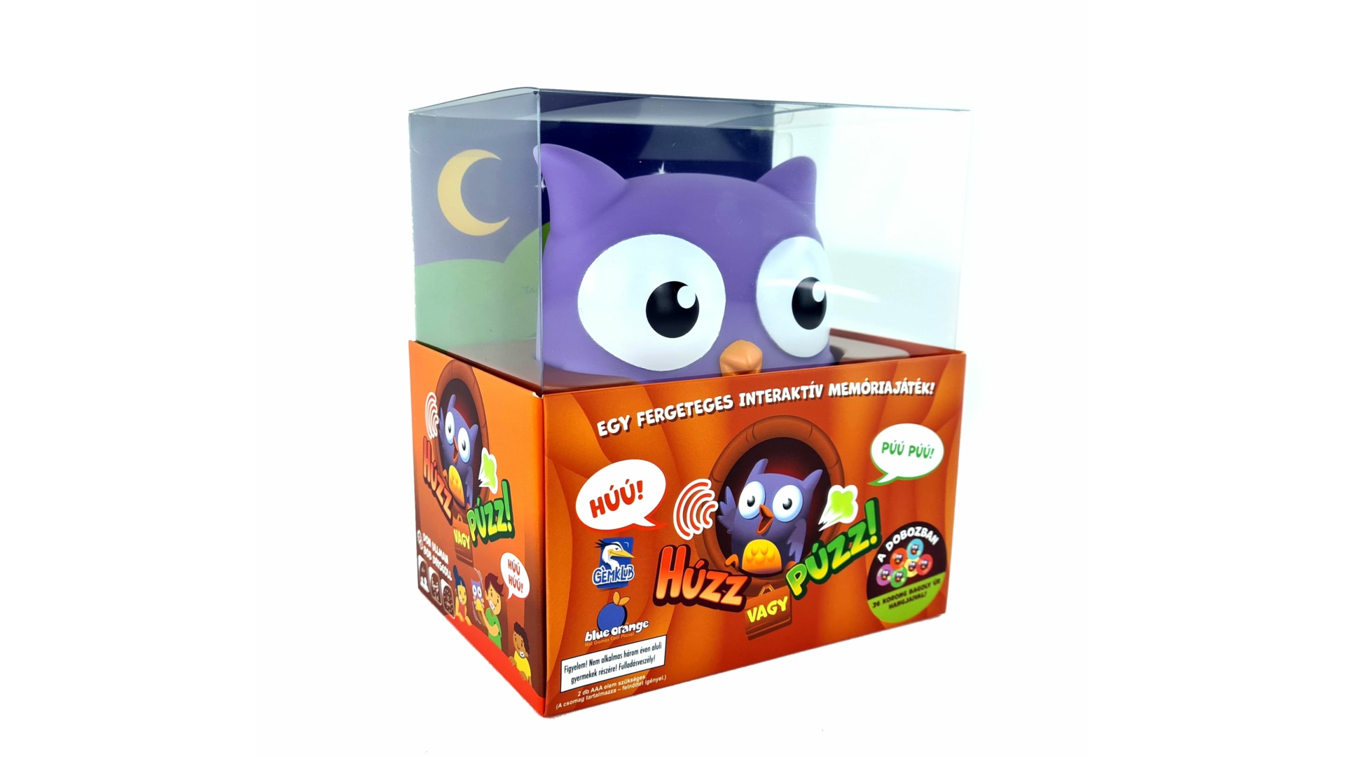 Egy klasszikus memóriajáték vidám, interaktív csavarral! A főszereplője egy elragadó bagolyfigura, amely megrázva hangot ad ki – vagy húzik, vagy púzik egyet. A gyerekek feladata, hogy a hangokhoz tartozó lapkákat megtalálják, legyen az húú, húú-húú, púú vagy púú-púú.