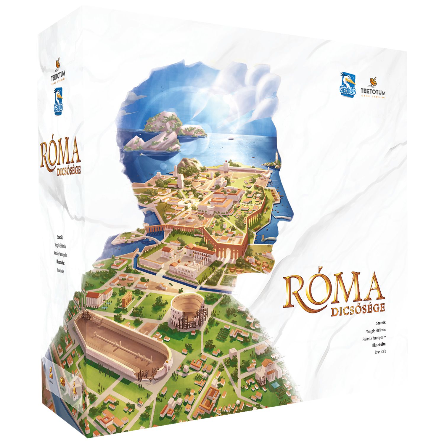 Egy negatívumként említeném, hogy a játék insertje nem egyértelmű. Valamint féltem a nagy provincia-korongot, hogy nem fog-e szétesni, mivel a népességkorongokat rajtahagytuk és tartok tőle, hogy feszíti a korongot, de szétmenne valószínűleg, ha állandóan levennénk a népességkorongokat. Nem nagyon tudom, hogy ezt a koncepciót, hogy képzelték a tervezők. Az egyéb komponensek jó minőségűek (Pantheon,épületek, ármányjelzők kifejezetten tetszenek.) A provincia-koorongnál is tetszik, hogy forog a játéktér.