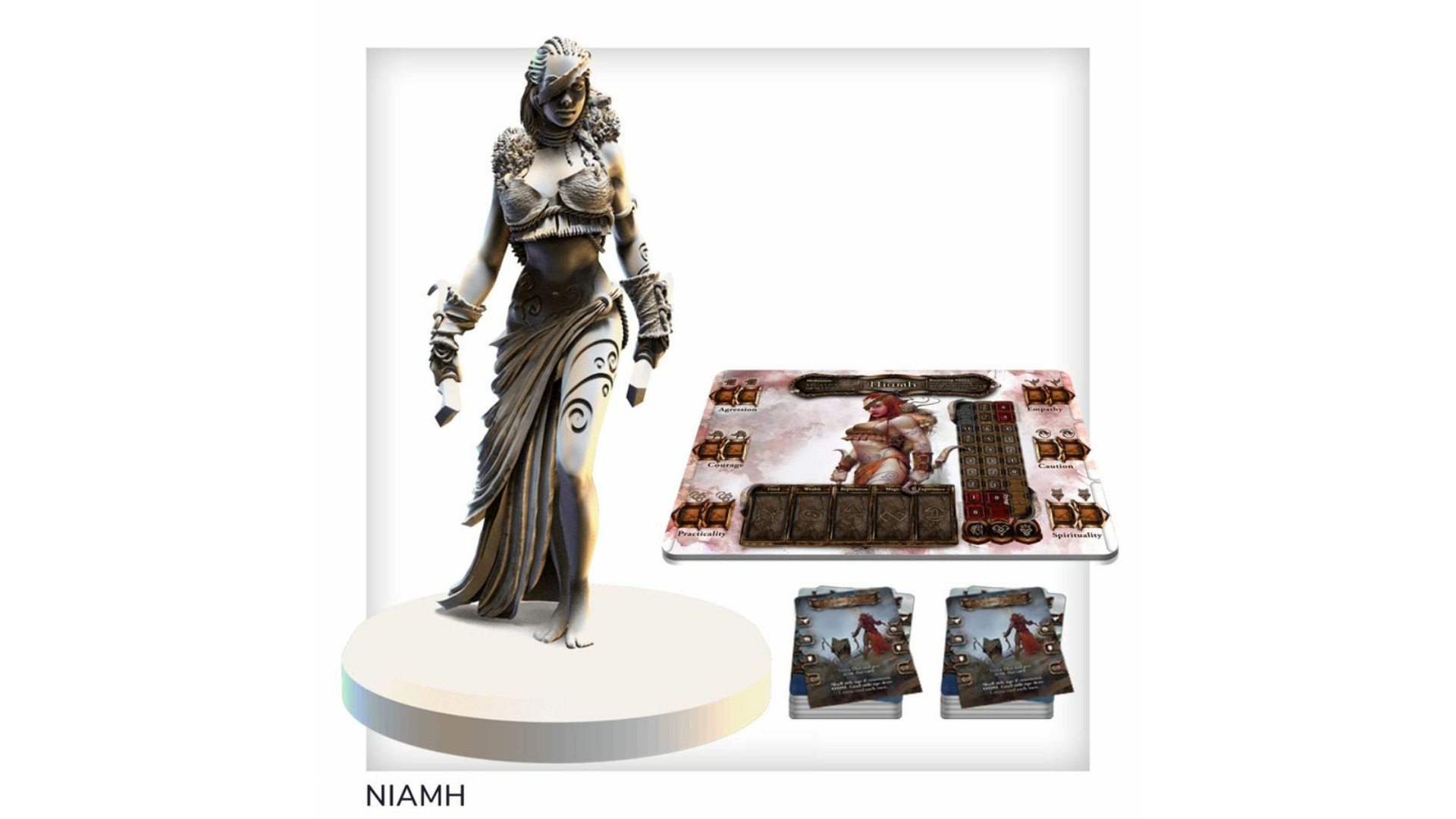 Niamh egy olyan univerzális karakter, aki a Tainted Grail játék mind a 4 kampányában használható, mert minden karaktertípus alapkártyáival és karaktertáblájával kombinálható. Fedezd fel Avalon történelmét az ő szemszögéből, miközben használhatod a kiváló harci és diplomáciai kártyáit.
