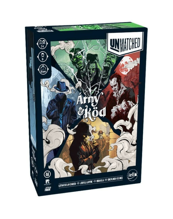 Hogyan teljesítenének a viktoriánus korabeli Anglia híres karakterei a csatatéren? Csak egy módon derítheted ki: induljon az összecsapás! Az Unmatched egy fordulatos taktikai párbaj, ahol a játékosok ismert karakterek bőrébe bújva küzdhetnek meg egymással. Az egyes készletek szabadon keverhetőek, így az Árny & Köd nemcsak egy önálló játék, hanem kiegészítő is egyben.